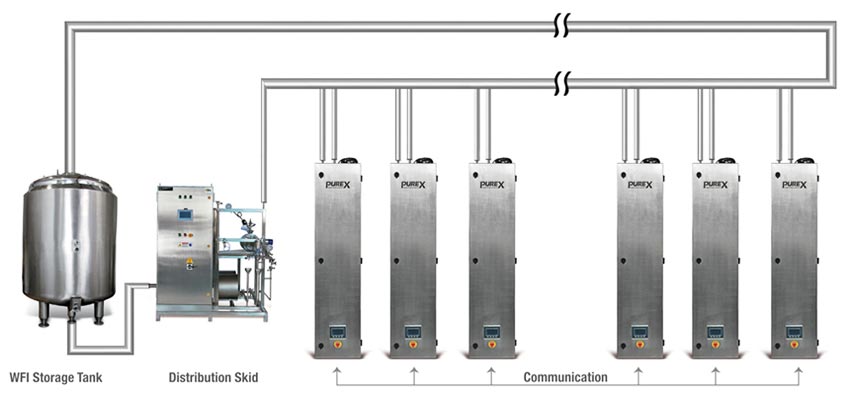 This model can dispense the WFI at varies temperature and flow rates. Its operation is PLC controlled fully automatic and can communicate with other PLCs or SCADA.